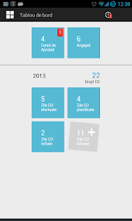 Aplicația întâmpină utilizatorul cu un tablou de bord, care în funcție de rolul acestuia în companie poate avea o secțiune sau două. Utilizatorii care nu au persoane în subordine pot vedea situația proprie a concediilor de odihnă și a altor tipuri de concedii – lansate în curs de aprobare, aprobate, rămase de efectuat. Utilizatorii cu drept de manager vor vedea evidența proprie dar și pe cea a salariaților din subordine, putând oricând analiza câte zile de concediu au fost efectuate, perioadele în care s-a beneficiat de acestea, câte zile mai ramân de efectuat, câte zile se vor reporta.