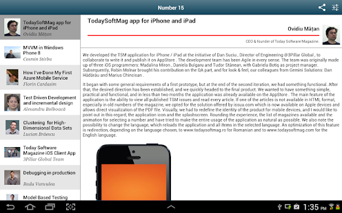 TodaySoftMag application for Android provides easy and mobile access to online content of Today Software Magazine.