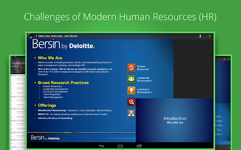 "In this concise course, Josh Bersin takes us through all the major trends in HR and Talent Management that are in play and that are bound to impact our profession and our organizations. This is a great high-level summary of more than just talent management. It includes insights and models for many HR practice areas. Hoping to see more content like this by Bersin."